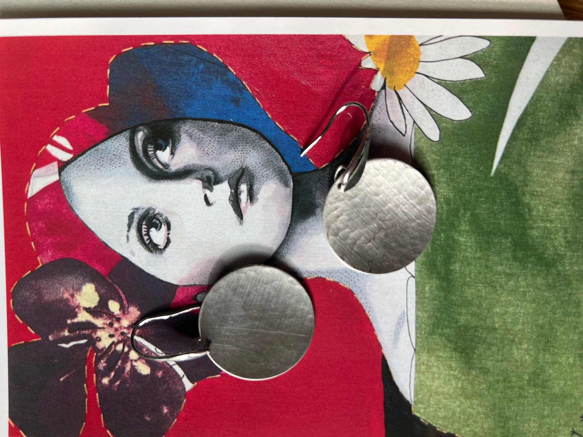 Mein Schmuck wird aus rohem Messing, Edelstahl oder Aluminium hergestellt. Ich arbeite mit dünnen Materialien, sodass die Stücke sehr leicht sind, obwohl einige groß und auffällig sind. Der Schmuck und die tinymetalart-Stücke werden von mir in meiner Werkstatt in Niederösterreich handgefertigt.