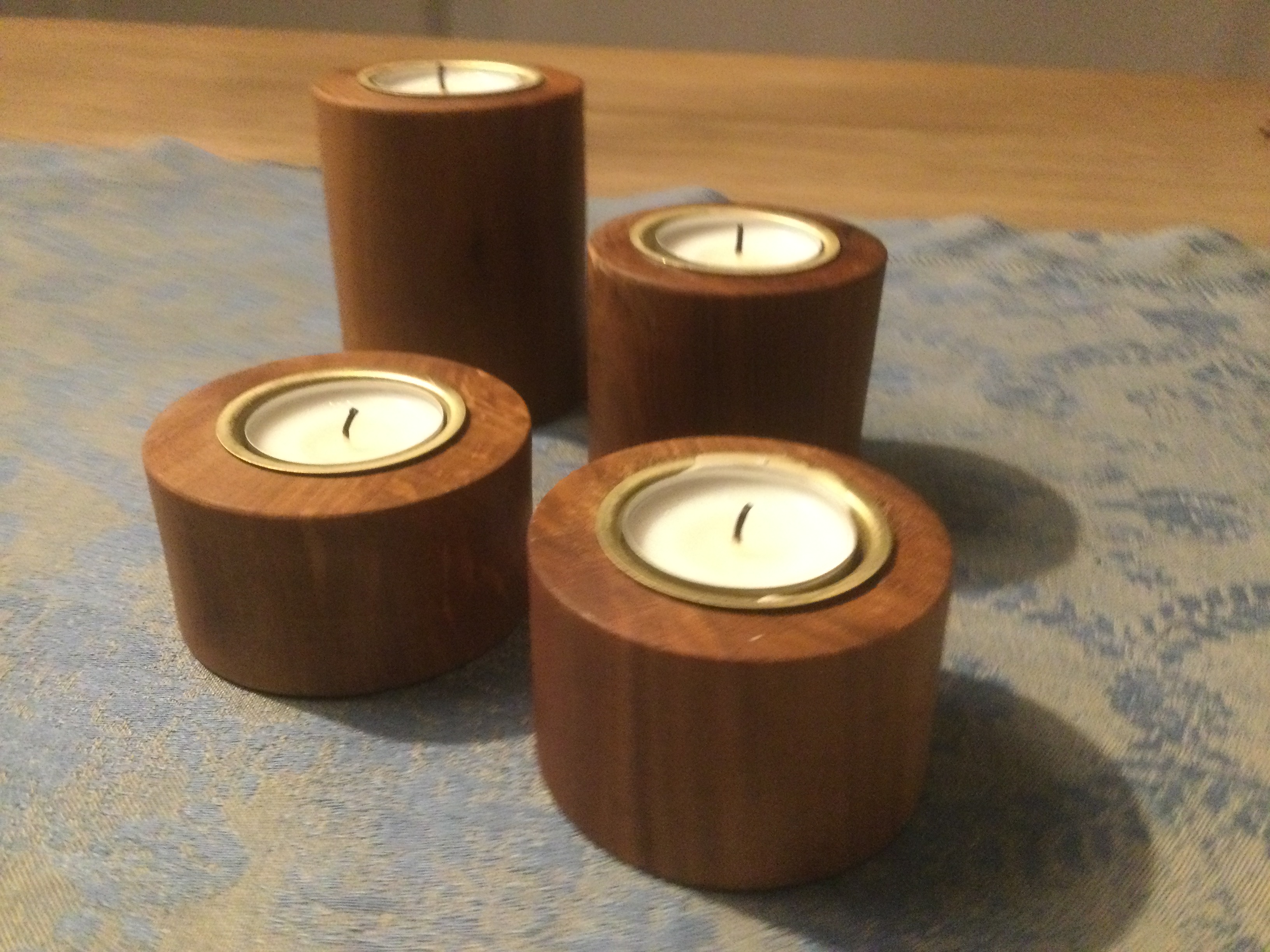 Holzschalen, Stifteköcher, Holzvasen für Trockenblumen, Tischlampengestelle mit LED Beleuchtung, Kerzenhalter für Teelichter.