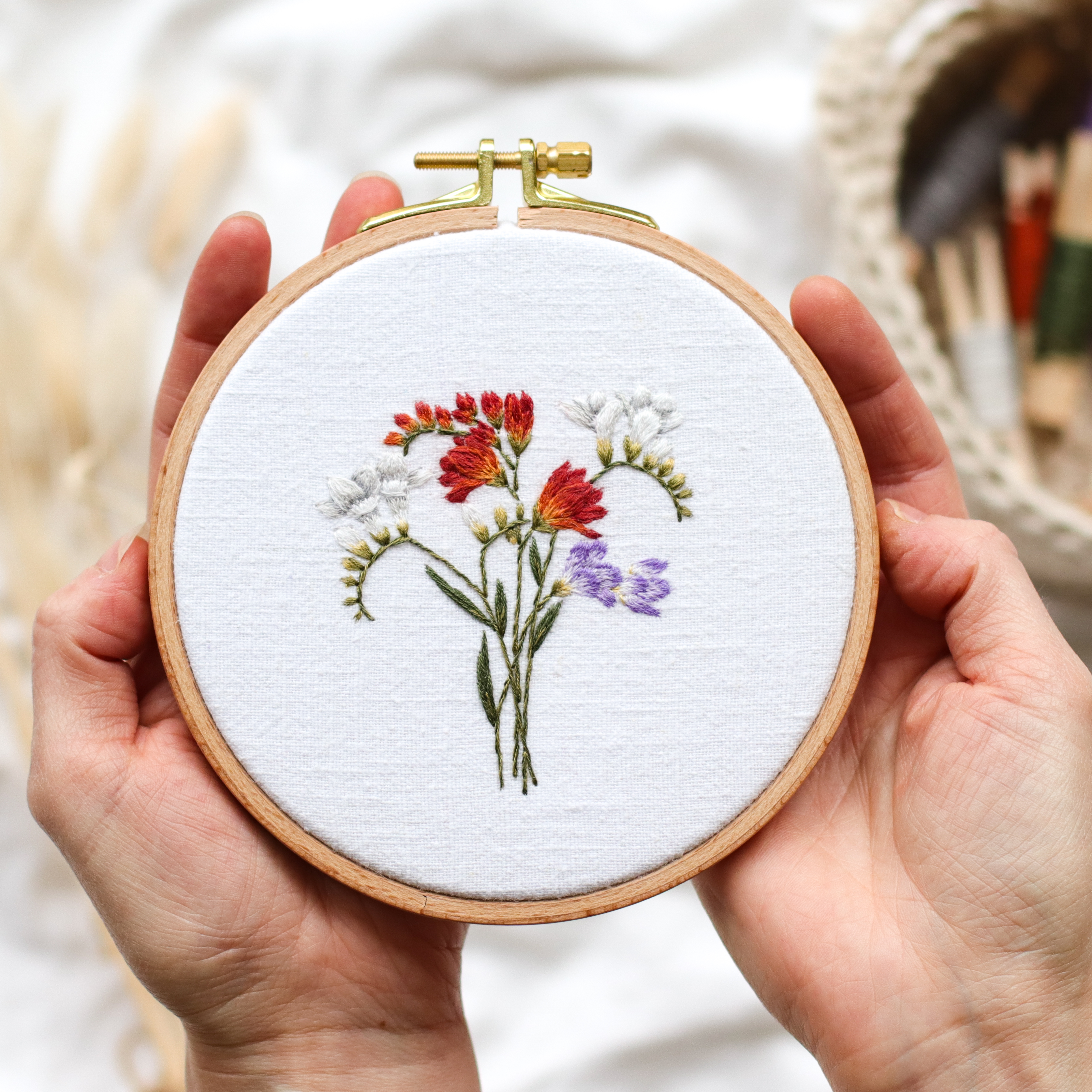 Mit viel Liebe zum Detail sticke ich besonders gerne blumige Stickbilder mit hochwertigem Garn auf ausgewählten Stoffen.